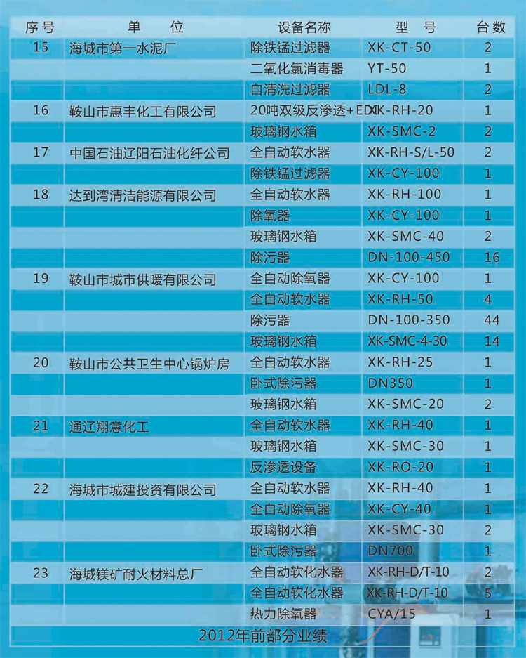 水處理設備系列|鞍山市益水環保設備有限公司銷售業績
